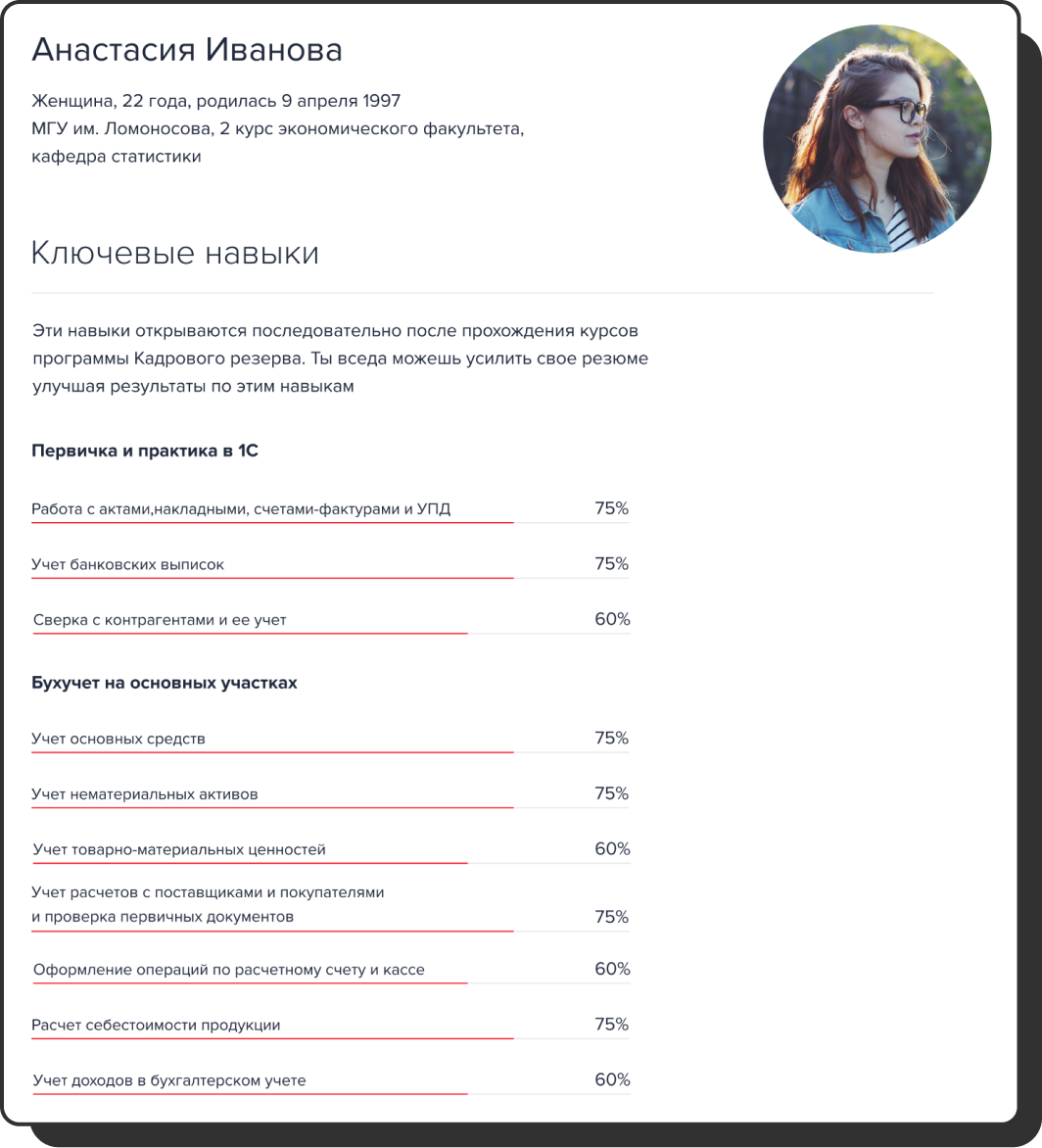 Скилл-паспорт стажера показывает уровень владения навыками — профессиональными и мягкими